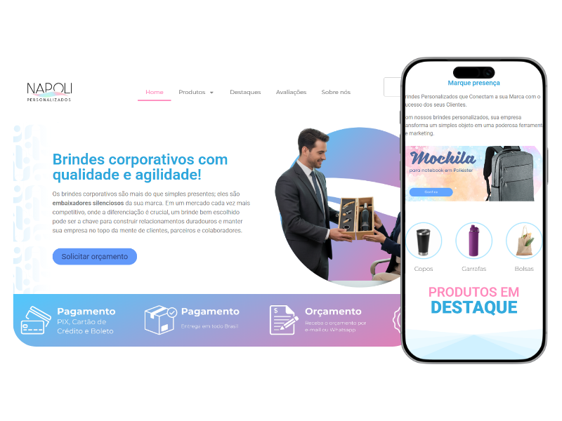 Sua empresa merece mais que um template pronto. Criamos presença digital sob medida: de Landing Pages estratégicas a E-commerces robustos, e de Sites Institucionais a Portfólios impactantes. Garanta uma imagem profissional que gera confiança e negócios.